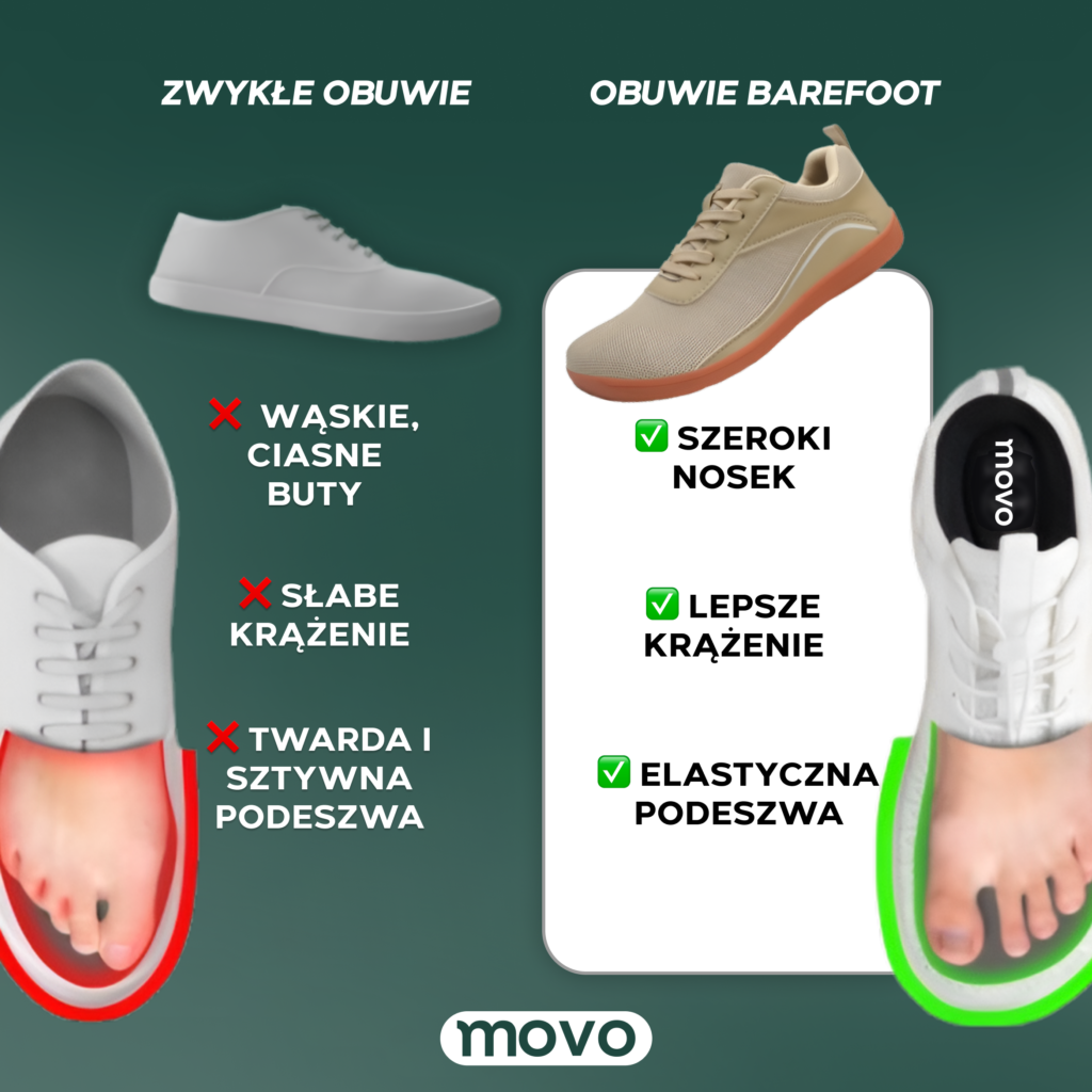 Wybierając obuwie MOVO barefoot, wybierasz komfort, zdrowe stopy i naturalne doznania podczas chodzenia. To wyjątkowe obuwie daje uczucie chodzenia boso, zapewniając jednocześnie niezbędną ochronę i wsparcie.