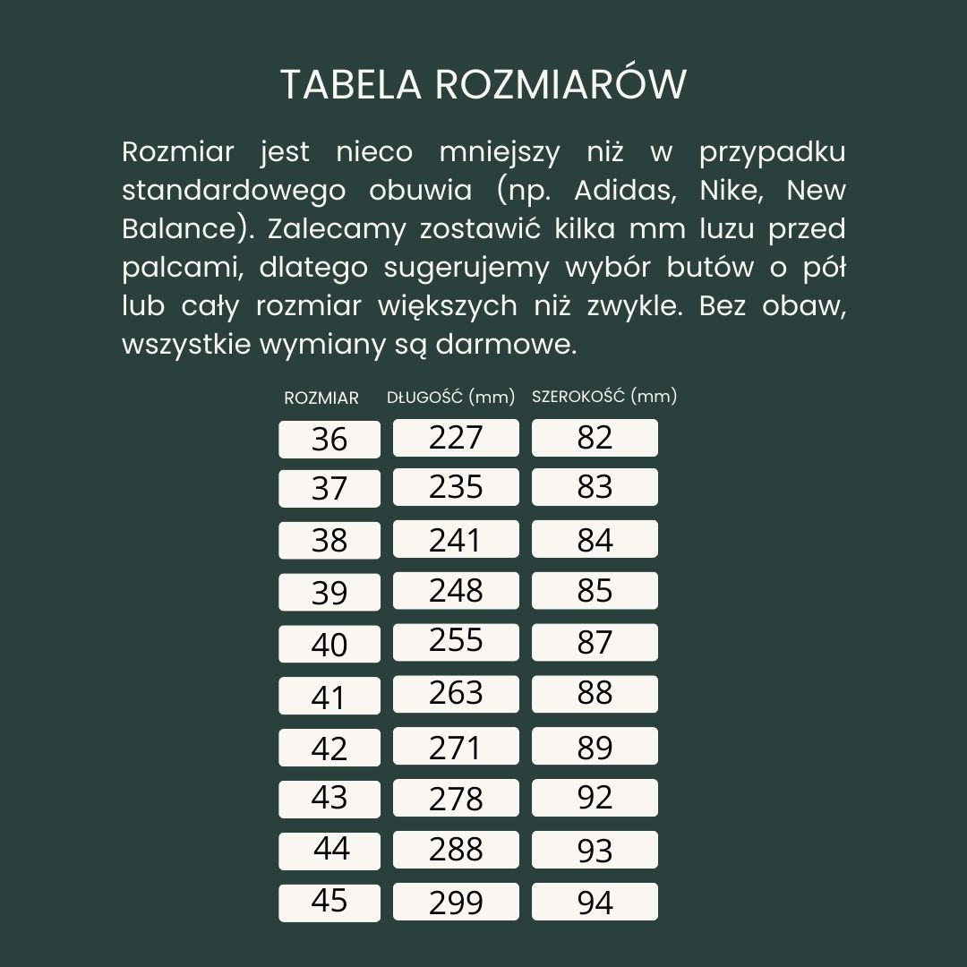 Ze względu na moją szeroką stopę i potrzebę wygody zdecydowałam się na ich zakup, ale ich jakość i trwałość pozytywnie mnie zaskoczyły.